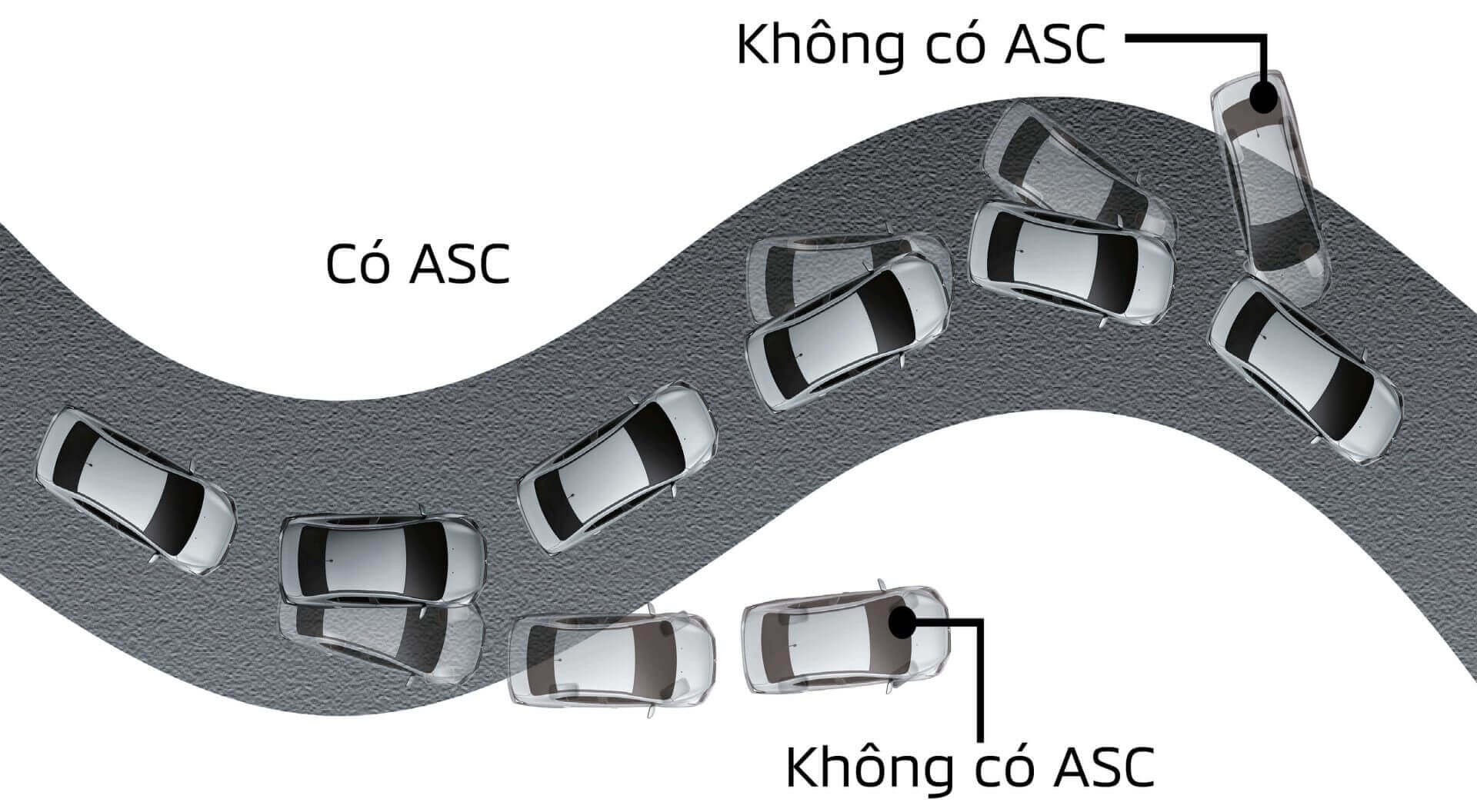 Hệ thống cân bằng điện tử (ASC)Hệ thống cân bằng điện tử sử dụng các cảm biến để phân tích chuyển động và độ trượt của xe. Bằng cách kiểm soát công suất động cơ và lực phanh lên từng bánh xe riêng biệt, hệ thống ASC giúp duy trì sự ổn định của xe ngay cả trong điều kiện trơn trượt