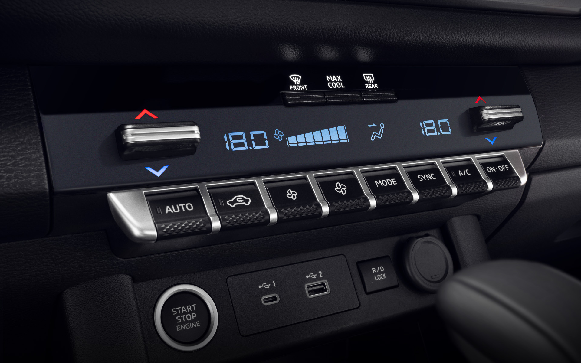 Cụm điều hoà tự động 2 vùng độc lậpHiệu quả làm mát hàng đầu phân khúc, tăng độ thoải mái khi lái xe dưới trời nắng nóng.
