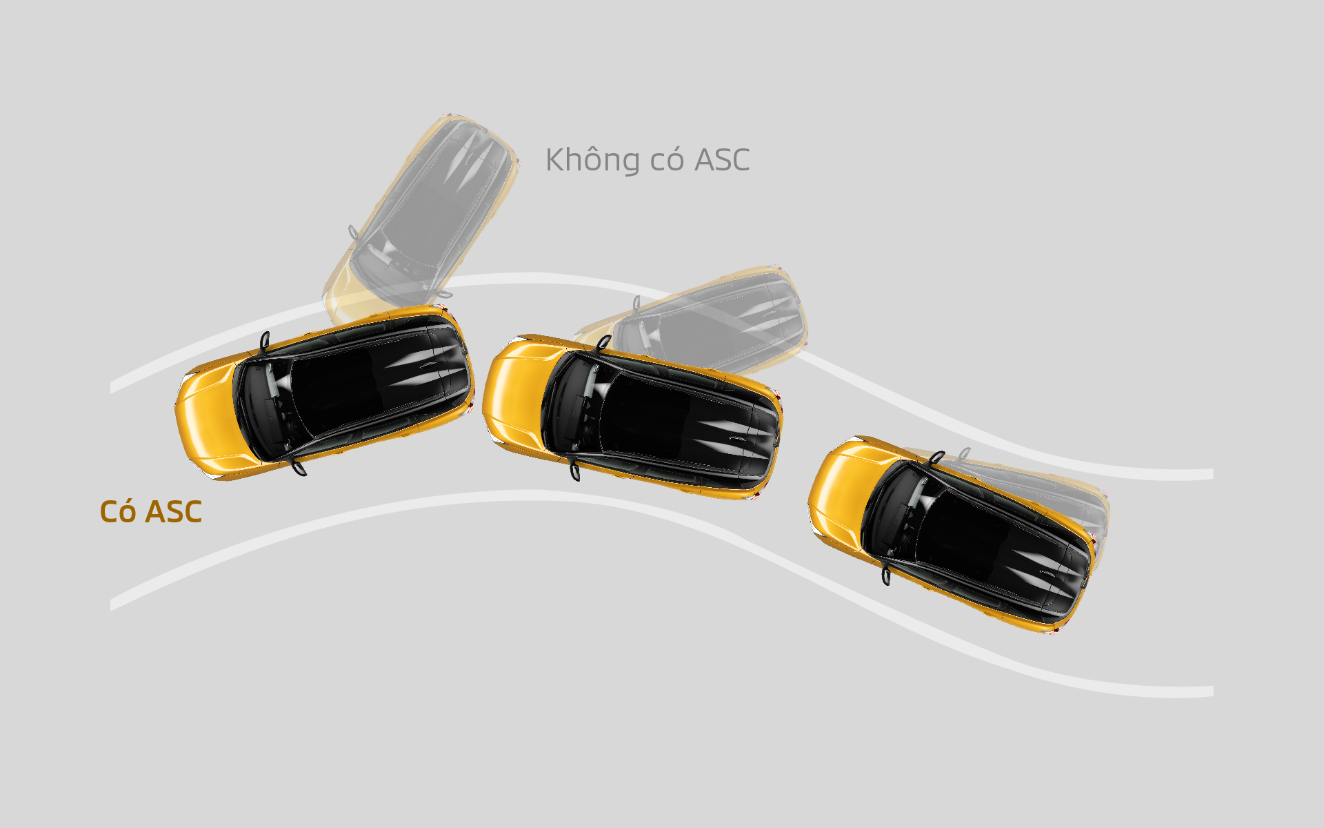 Bằng cách kiểm soát công suất động cơ và lực phanh lên từng bánh xe riêng biệt, hệ thống ASC giúp duy trì sự ổn định của xe ngay cả trong điều kiện trơn trượt
