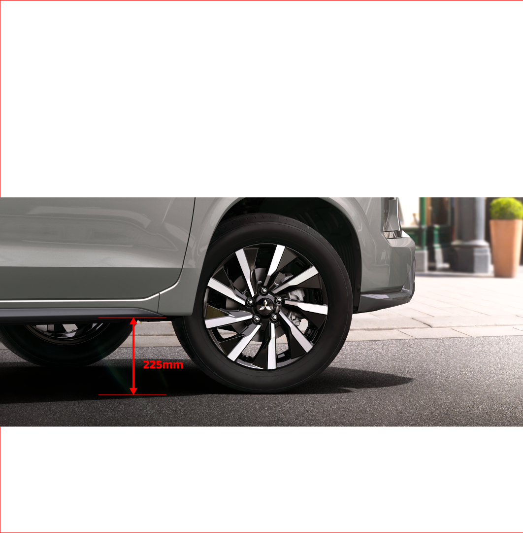 Khoảng sáng gầm lớn 225mm Khả năng lội nước lên tới 400mm, mang lại sự linh hoạt trên mọi điều kiện địa hình.