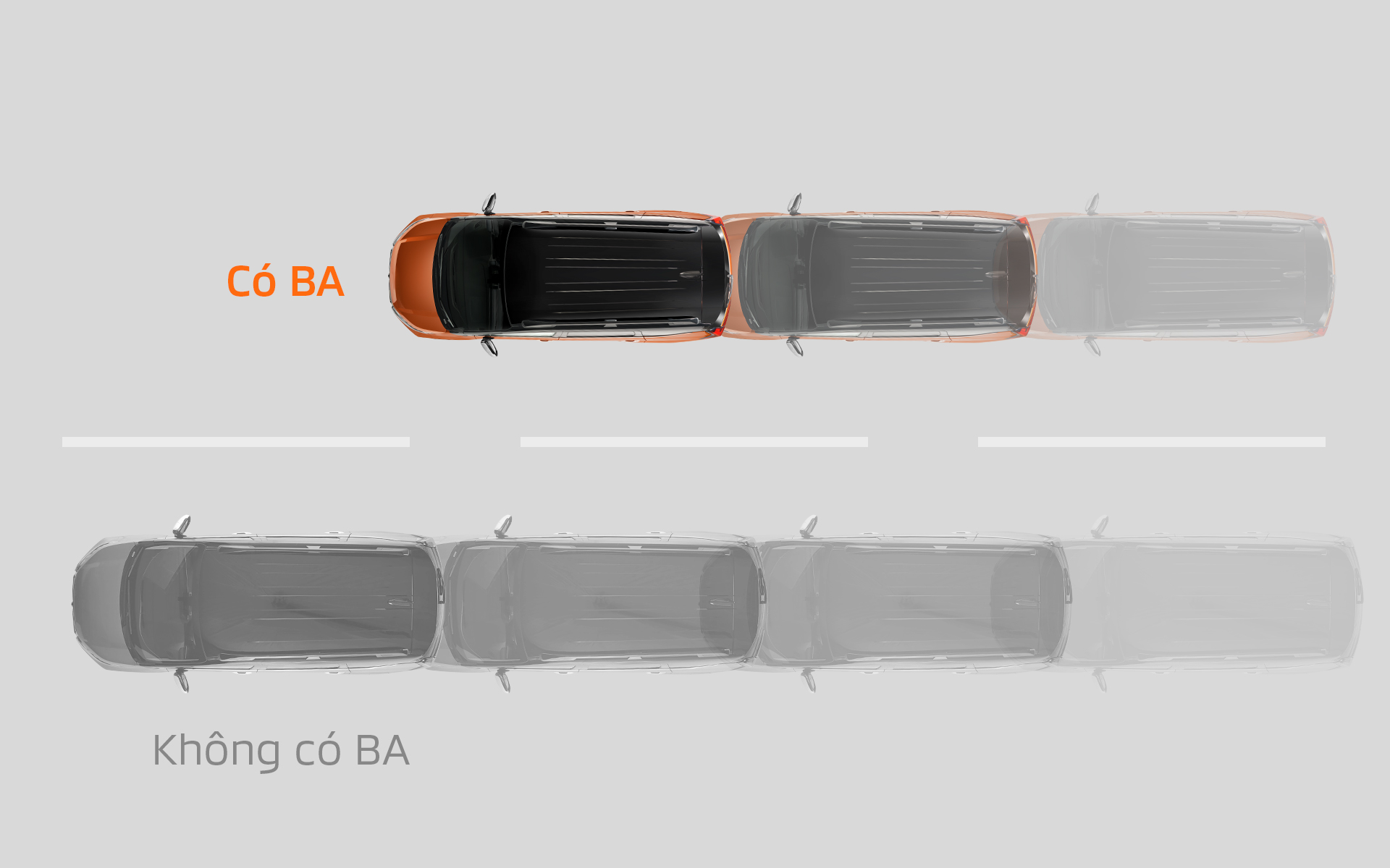 Hệ thống trợ lực phanh điện tử (BA) Giúp tăng cường lực phanh cho người lái trong trường hợp đạp phanh khẩn cấp, đảm bảo an toàn cho người và xe.